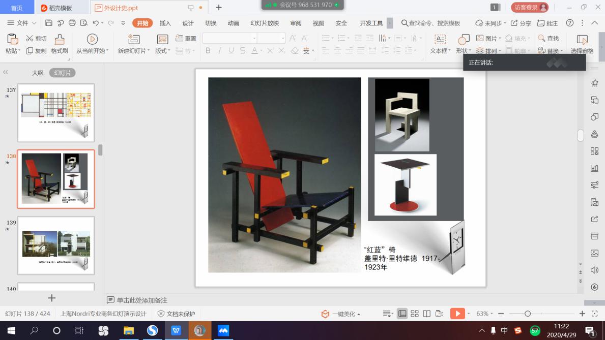 李晶老师为学生准备了比以往教学更丰富的课件和教学素材:除了PPT课件,还在教学大纲基础上增加了网络平台上的优秀相关课程,添加更多新的行业动态和实践成果,提供大量的家具设计知识、大师作品、实践案例等,供学生辅助学习使用。直播授课教学开始后,通过视频考勤、PPT教学课件共享、直播讲解、设计案例分享、视频资料播放、课题讨论等方式进行授课。授课过程中经常打开教师的摄像头使学生能够感受到面对面授课的仪式感。为活跃课堂气氛,经常点名学生进行分享互动,与学生形成面对面研讨式交流,让全体学生参与其中,避免长时间听课产生枯燥乏味的情绪。