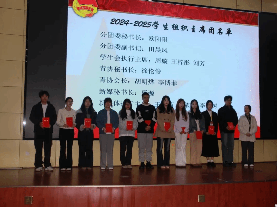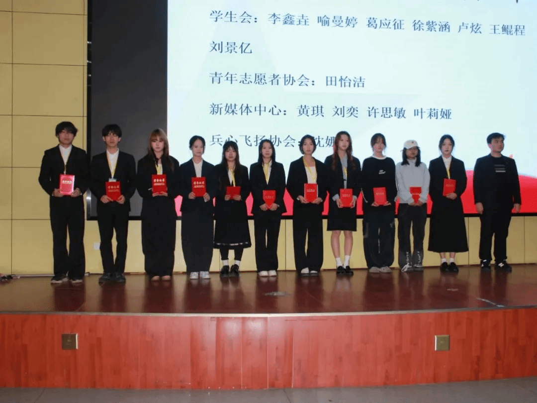 余书记、田老师分别为2024-2025学年主席团成员、优秀部长颁发荣誉证书。会议宣布了新一届学生会、青年志愿者协会、新媒体中心、兵心飞扬协会部长及以上学生干部成员名单。