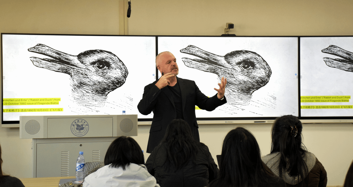 Hedley Roberts 教授拥有三十余年艺术、设计、建筑及新兴创意技术领域的学术与管理经验,作为国际创意教育领域的领军者,他深耕跨文化教育合作,长期推动 UCA 与中国高校的交流联动。演讲中,他提出核心观点:“创造力并非始于‘做’,而是始于‘看’,其本质是感知、临摹、变体与意义生成的有机结合。”