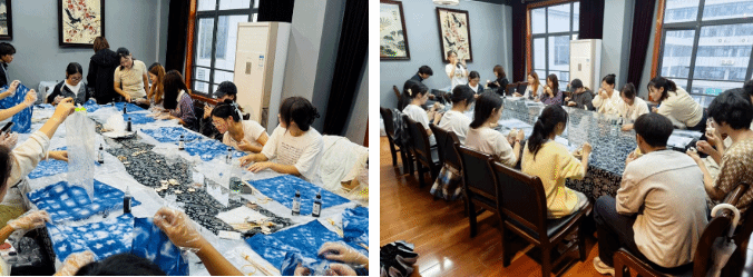 9月25日下午,艺术设计学院辅导员吕一卉带领25级学生代表20人,参与了由武汉市妇女干部学校与艺术设计学院联合举办“九月生辰·非遗扎染”特色专场活动,为同学们带来一场特别的非遗体验集体生日会。