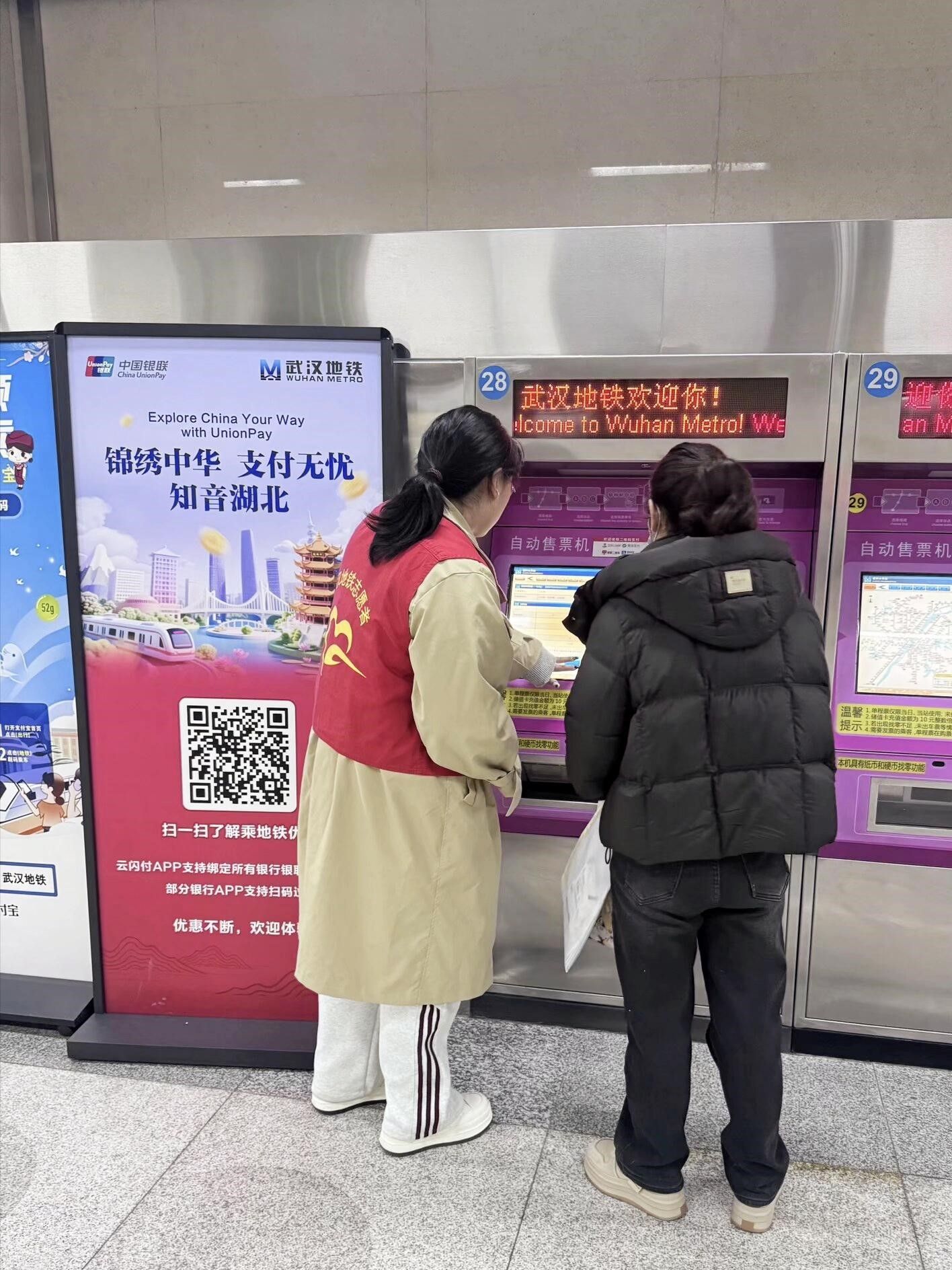 11月30日,武汉轻工大学艺术设计学院青年志愿者协会组织志愿者,以统一的红色志愿服装与饱满热情,在汉口火车站地铁站开展便民志愿服务活动,为过往乘客提供出行协助。